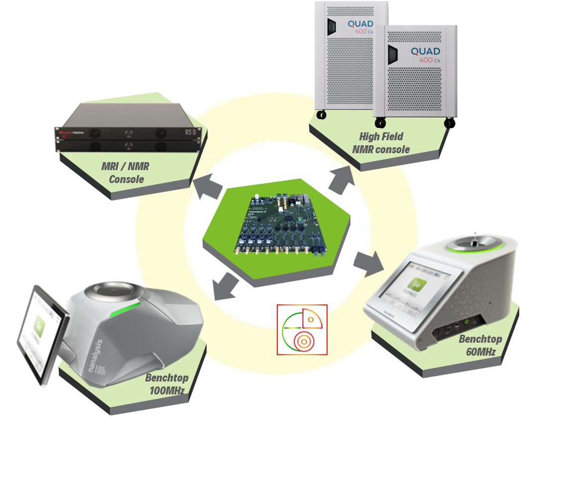 - Spectromètres RMN complets ainsi qu'aimants, systèmes de shimming et bobines RF